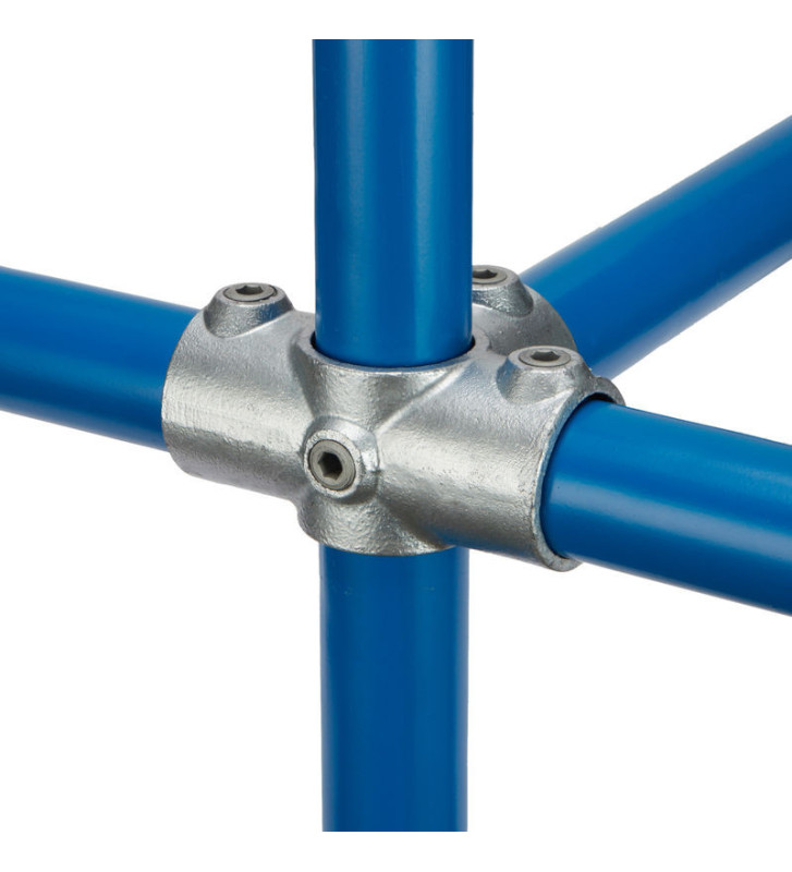 El Travesaño de Tres Conectores 35-7, producido por Kee Klamp, es un accesorio versátil comúnmente utilizado para conectar postes verticales con tubos horizontales en tres direcciones, todos en ángulos de 90° respecto al poste vertical. El poste atraviesa el accesorio, lo que lo hace ideal para crear estructuras estables y seguras. Este producto pertenece a la categoría de Travesaños.