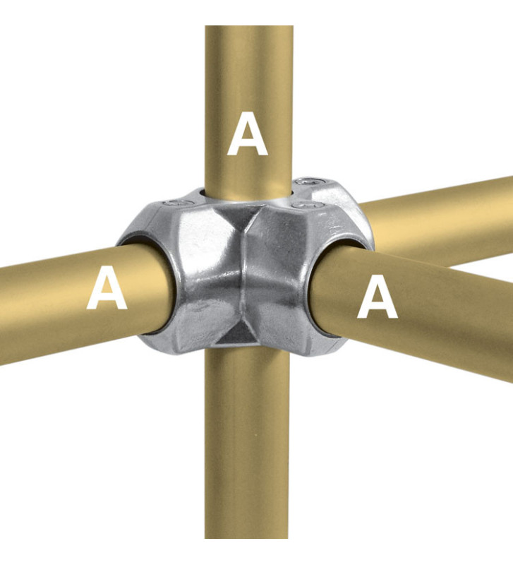Este conector Kee Klamp es perfecto para crear marcos, pasamanos, exhibidores, barreras de seguridad o cualquier construcción que requiera un sistema de soporte rígido y multidireccional. Su diseño robusto le permite resistir esfuerzo considerable, lo que lo convierte en una opción confiable tanto para proyectos interiores como exteriores.
